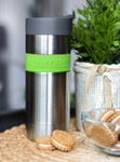 Praktischer Thermobecher aus doppelwandigem Edelstahl. Hochwertig, einfach zu reinigen und 100% auslaufsicher. Hält 4 Stunden warm und 8 Stunden kalt. Einfach per Druckknopf zu bedienen und somit ideal für unterwegs.