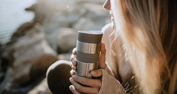 Spülmaschinengeeignet: Becher und Deckel können in der Spülmaschine gereinigt werden. Der Deckel sollte vorher auseinander geschraubt werden. Grundsätzlich empfehlen wir jedoch eine gründliche Handwäsche.